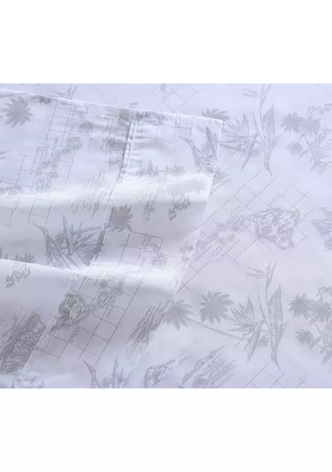 Update your bedding ensemble with the new cool zone sheet set from Tommy Bahama. Available in a variety of prints, these crisp percale cotton sheets offer advanced breathability and supreme comfort for a better night’s sleep. The sheets and coordinating pillowcases feature cool comfort technology and moisture wicking properties which keep you cooler and dryer throughout the night. These super soft sheets are wrinkle resistant, oeko-tex certified and machine washable for easy care. The included fully elasticized fitted sheet prevents slipping from your mattress and ensure a perfect fit. The deep pocket fitted sheet fits mattress up to 18″. Set includes one flat sheet, one fitted and two pillowcases.