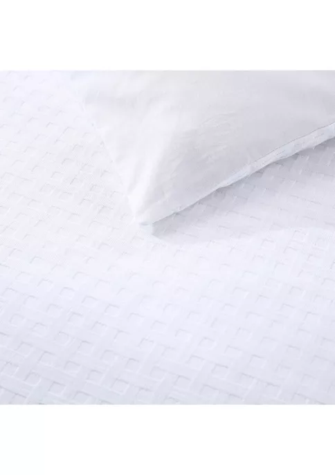 Transform your bedroom into a serene oasis with the Tommy Bahama basketweave comforter set. This comforter set features a unique and subtle basketweave woven design on a solid white ground. The reverse is a matching solid white ground on a cotton percale. The comforter is 100% cotton with an 8 oz. Polyester fill. Our products are crafted with you in mind, this comforter set is standard 100 by oeko-tex certification- tested against a list of 350 harmful substances, resulting in a chemical free item. The set includes 1 comforter and 2 shams. Ensemble is machine washable for easy care.