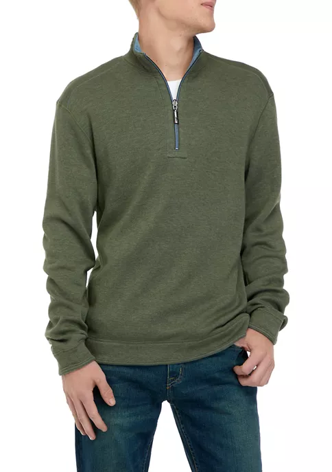Reversible for versatile layering, this half-zip pullover from Tommy Bahama® is ideal for cool, preppy occasions.