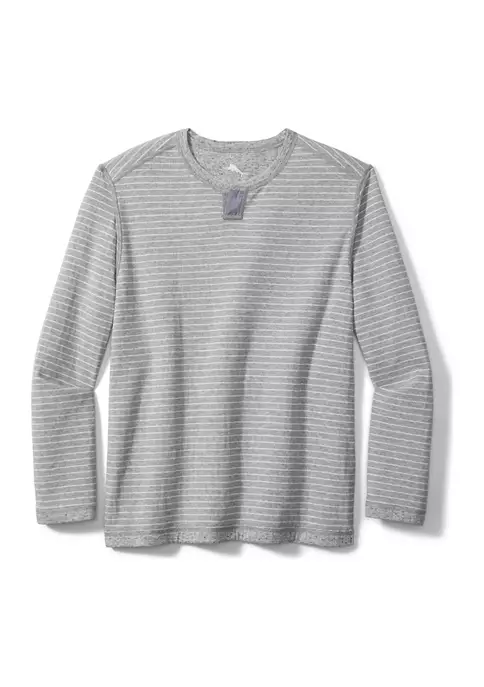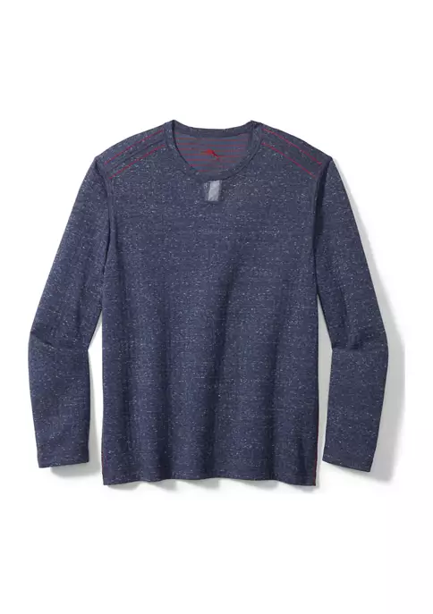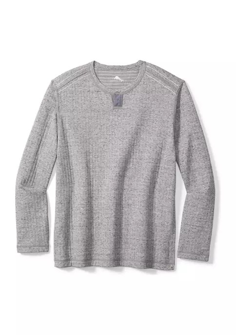 Get two stylish sweatshirts for the price of one with this reversible sweatshirt from Tommy Bahama®, featuring a striped pattern on the front with a heathered reverse.