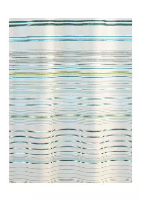 The La Scala Breezer Cotton Shower Curtain by Tommy Bahama® calls up visions of a tropical paradise where it is always sunny and life is good. A casual cabana stripe in warm tones of green and aqua on an ivory ground makes a relaxed, yet elegant statement for your bathroom oasis. The shower curtain is 100% cotton and machine washable for easy care. Liner and hooks not included.