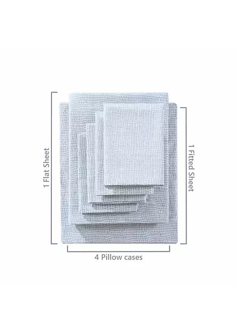 Create a hotel at home with our highest thread count sheet, our new Tommy Bahama 1000 thread count printed sateen 6 piece sheet set, brings the ultimate luxury into your bedroom. Woven with a generous number of threads, super smooth and so soft, this lustrous layer is wrinkle resistant and features a subtle sheen that only gets better with time. Select from a soothing range of beautiful print patterns to create your own special haven to relax and unwind. included fitted sheet is fully elasticized and features a deep pocket which fits mattresses up to 18″ inches. Set includes 4 pillowcases, 1 fitted sheet and 1 flat sheet. Sheet set is machine washable for easy care.