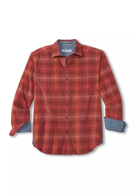 This lightweight cotton corduroy plaid shirt from Tommy Bahama® features a button-through front and chest pocket.