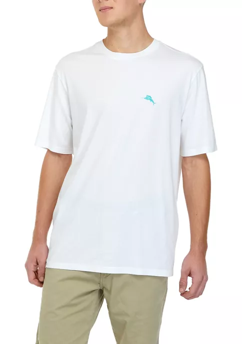 Featuring a scenic backscreen, this t-shirt from Tommy Bahama® is perfect for an island getaway.