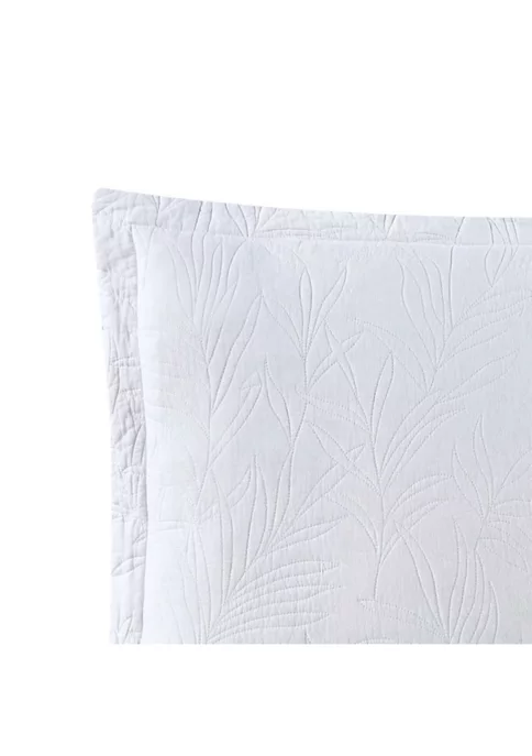 Our Tommy Bahama costa sera quilt was inspired by a relaxing coastal retreat. Our Tommy Bahama costa sera quilt features a subtle floral quilt stitch on a blue ground. The reverse is blue. This quilt is 100% cotton, with a cotton (80%)/polyester (20%) filling, lightweight and easy to layer. The shams feature a two piece back closure. The shams feature a 2 inch self flange, the corners of the quilt are rounded and finished with a fabric binding. This quilt is fully reversible. We have reduced our packaging, eliminating all plastic. Your quilt set will arrive secured with a ribbon. Quilt and shams are sold separately. Machine washable, for easy care.
