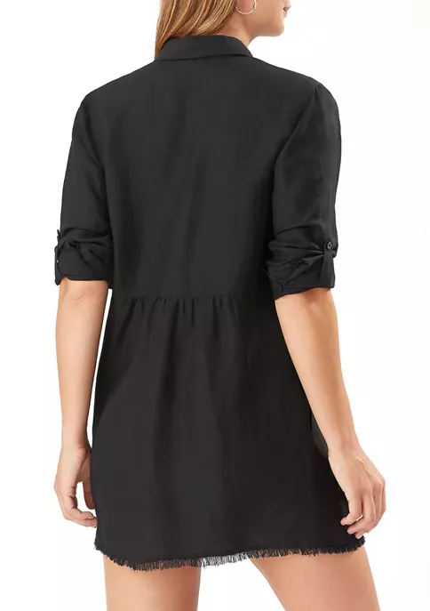 The lightweight-linen blend transforms this boyfriend shirt coverup into the perfect beachside look. Complete with handy pockets and sleek buttoning, this coverup can easily go incognito when paired with jeans and your favorite sandals.